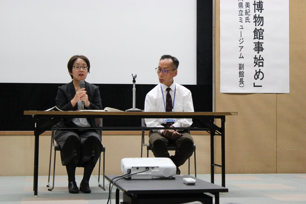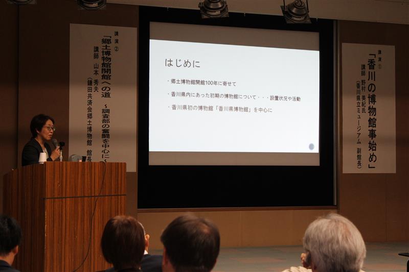 本年は鎌田共済会郷土博物館が開館して100年にあたります。これを記念いたしまして、今年の公開講座は「次の100年へ ~「星眼鏡」が語りかけるものを胸に~」をテーマに、香川県立ミュージアム副館長 野村美紀様と当館館長 山本秀夫の二人に、それぞれ博物館の歴史と魅力について語っていただきました。